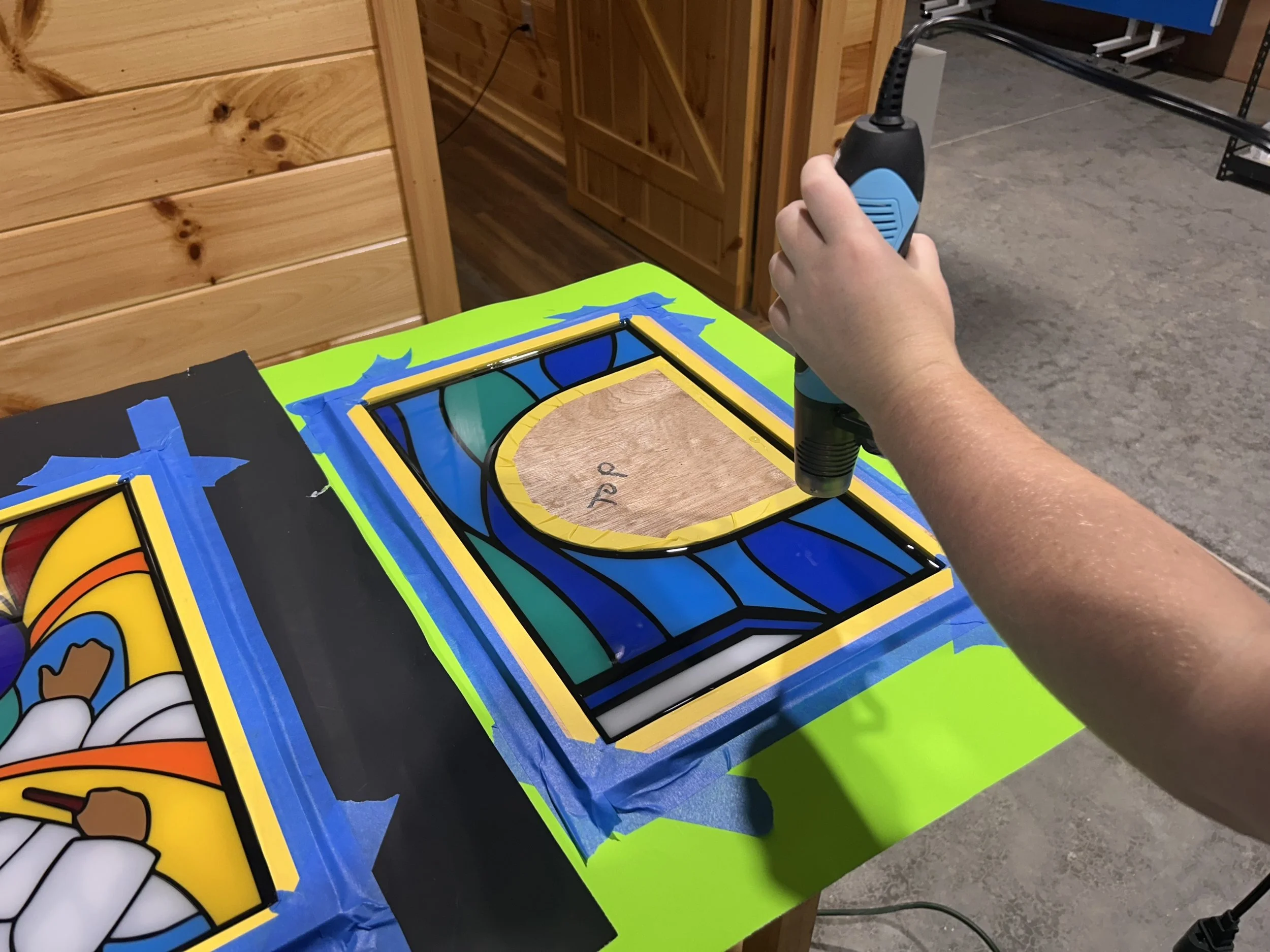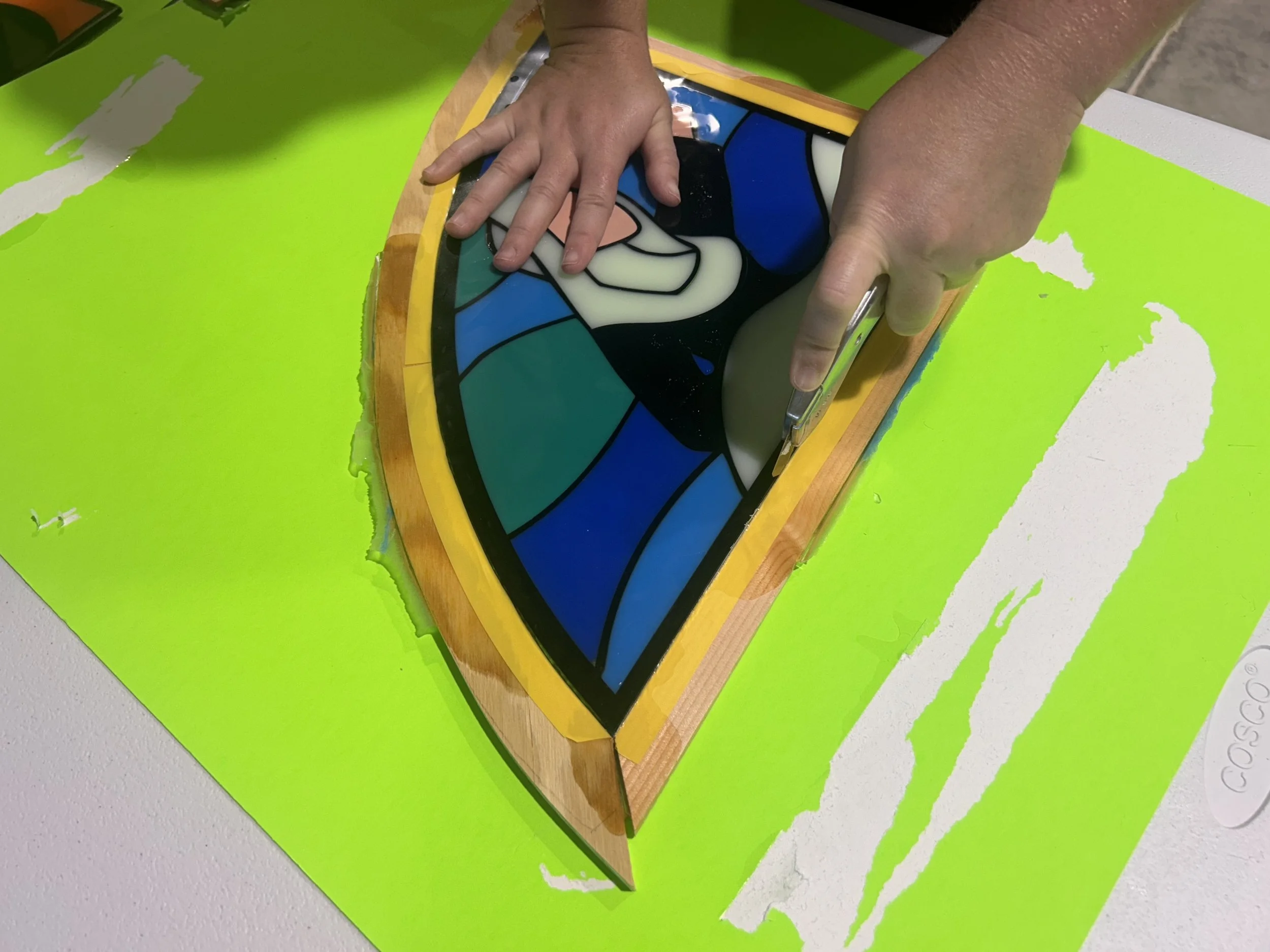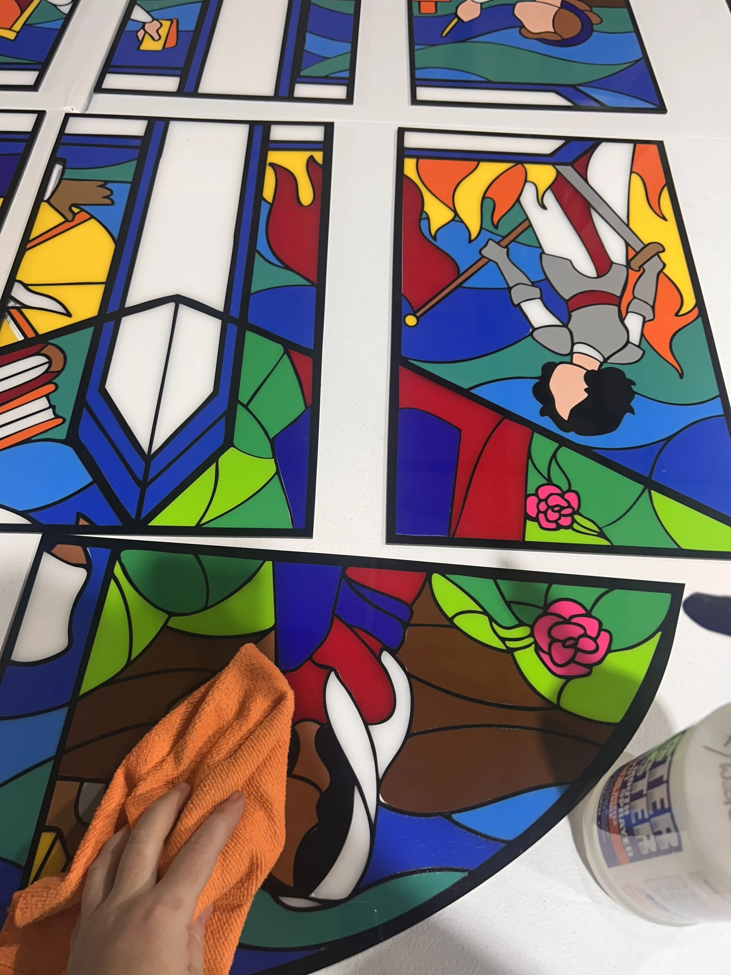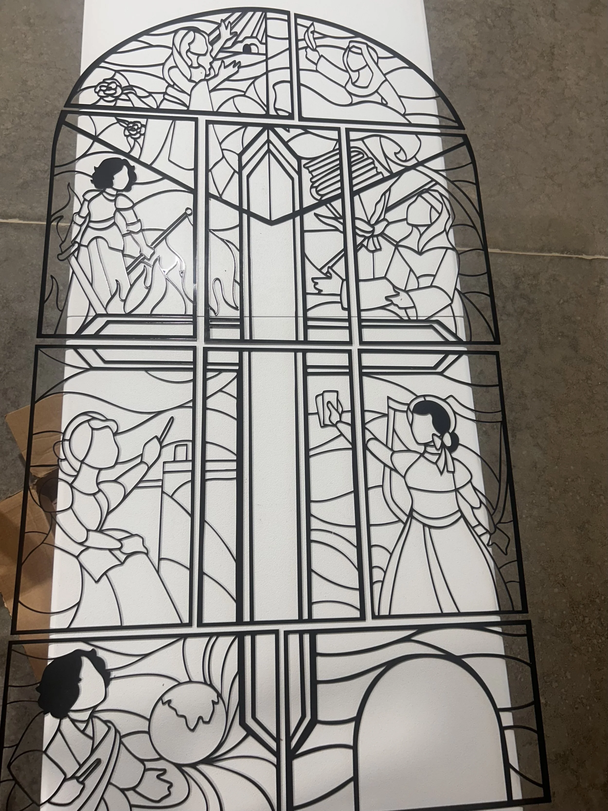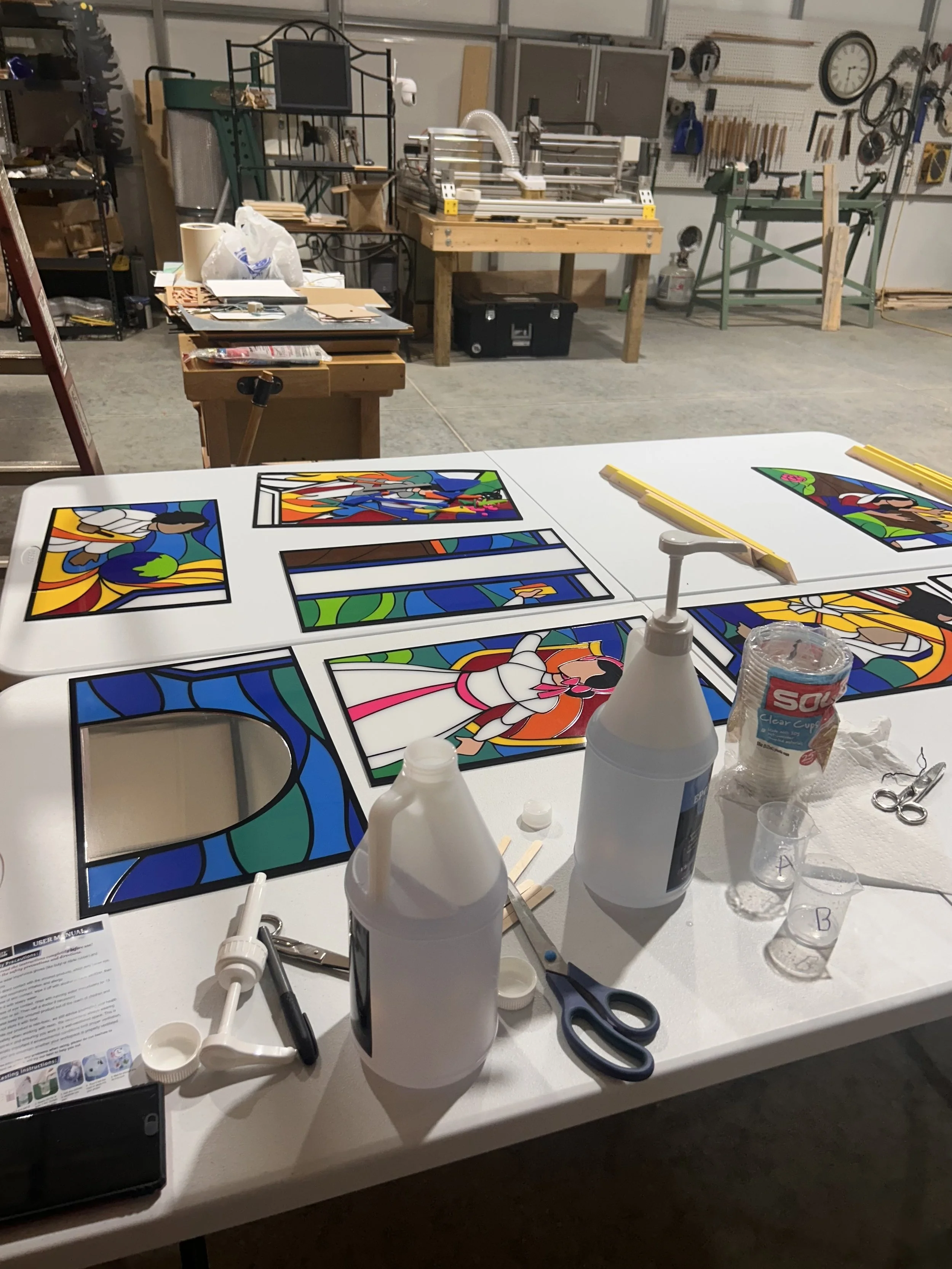 I chose to create my faux stained glass frame with acrylic and epoxy resin to bring the timeless artistic practice of stained- glass imagery into the current age with mediums that modern audiences were familiar with. Additional tools and materials used in this project, including a laser printer and software such as Procreate and Illustrator, are so current, this project could not have been produced before the past decade. However, shape language, design, and patterns of stained glass have been essential to the medium since its inception. Bringing these elements together were representative of the synthesis of our foundational matriarchs paired with the modern church to create something new, beautiful, and meaningful.