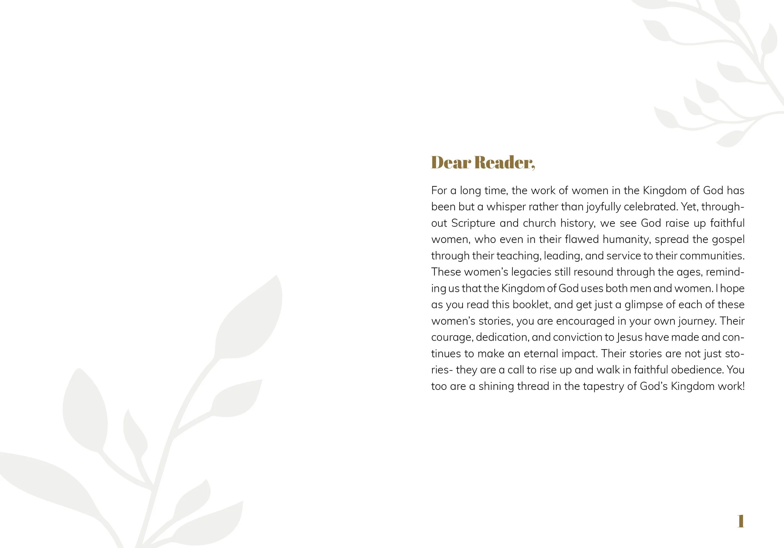 This booklet containing each of these women’s stories was intentionally written in a short, digestible format, to be both an easy but memorable read. My goal with this booklet, much like my other deliverables, was to create a piece of media that would encourage women and men to boldly share the Gospel of Jesus Christ, and get involved in changing their communities, just as the women before them did.