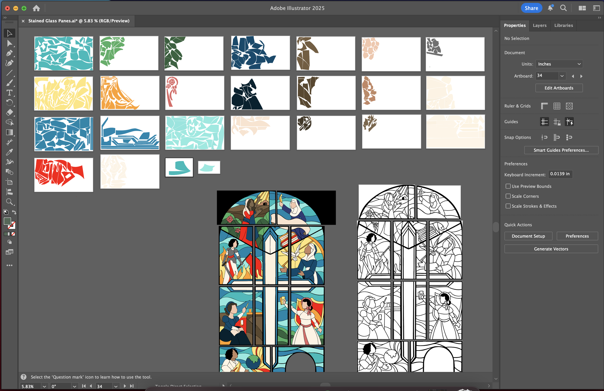 One benefit of using a digital medium for these illustrations was being able to add textures, patterns, and effects that can be seen in traditional stained glass, while maintaining my own personal illustration style.